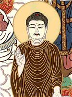阿弥陀如来(あみだにょらい)阿弥陀さまは西方の極楽浄土の教主さまです。極楽の住人を正しく教化するため説法に努められています。→お徳 | ![]() |