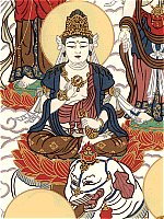 ![]() | 虚空蔵菩薩(こくうぞうぼさつ)虚空蔵さまは、大空のこころを体現する菩薩さまです。平穏に安住することなく菩薩道を実践し続けることを表すため、根本教主大日如来さまのあとに、十三佛のしんがりとして登場されます。→お徳 |